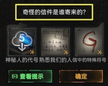 3、在奇怪的信件是谁寄来的?中填入线索熟悉我们的人、信中的特殊符号、神秘人的代号。