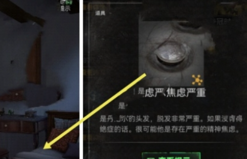 6、从丹尼尔家卧室上楼梯,进入右侧卧室,点击床上的头发,得到线索丹尼尔焦虑严重。