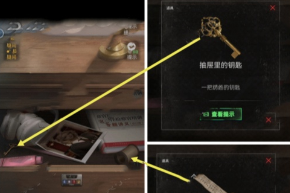 14、点击右侧抽屉,用丹尼尔的小钥匙打开抽屉,获得神秘把手。