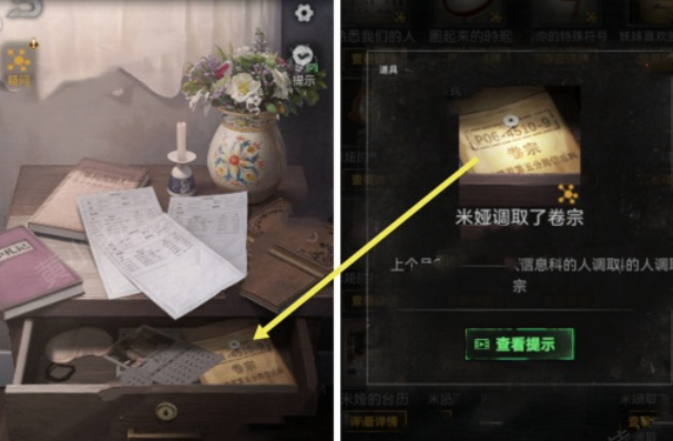 13、然后点击档案袋,解锁线索为米娅调取了卷宗,再点击架子上的音乐盒,将一个纸袋卷轴放在音乐盒上。
