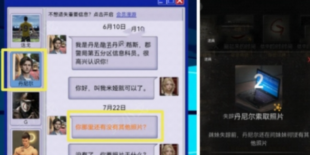 24、在米娅与丹尼尔的聊天对话框中点击橙色聊天信息,获得线索给丹尼尔发照片。