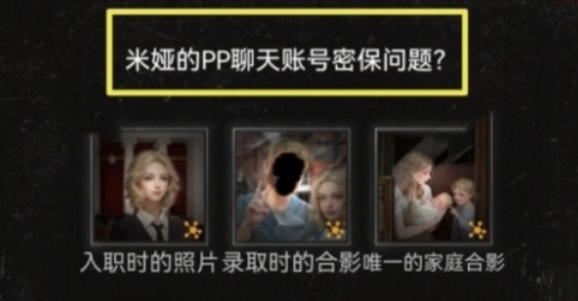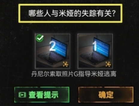 15、进入米娅出租屋客厅后,对于第一个问题,填入线索入职时的照片、录取时的合影、唯一的家庭合影,再打开电脑,解锁疑问哪些人与米娅的失踪有关?