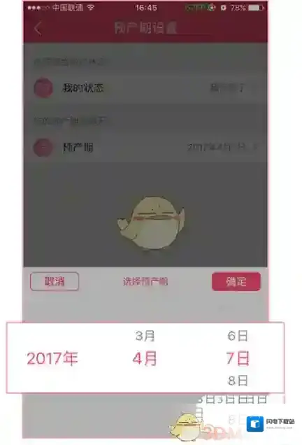 2、在“预产期设置”界面中,选择正确的预产期即可。