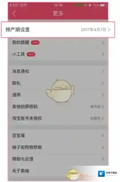 1、在“我”的界面中,点击“更多”,在“更多”界面中,选择“预产期设置”