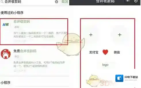 打开微信,然后在发现中,打开小程序,然后搜索二维码合并或合并收款码,就可以找到一些免费二维码合并工具,以合并收款码小程序为例,只要点击+号,然后使用相机扫描上面制作好的二维码,依次完成支付宝和微信二维码添加,然后点击“立即合并”就可以了,如下图所示。