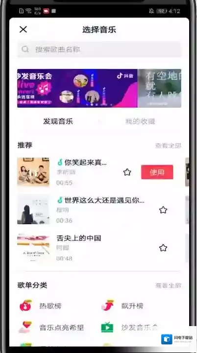4、找到你喜欢的音乐,点击使用即可使用这段音乐拍摄自己的原创视频