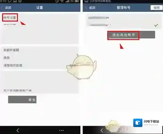 2)接着在设置页面中点击账号设置,在账号管理页面中点击添加其他账号。(如下图)