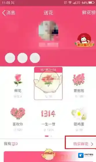2、点击送花进入买花界面,不同的鲜花有不同的价格,默认用户都是没有花,通过右方购买鲜花: