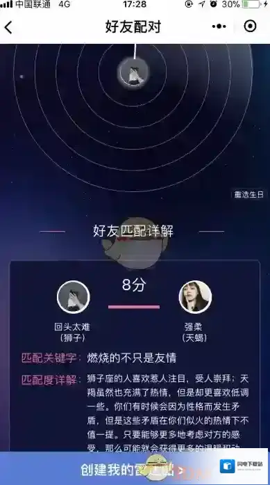 4、你和好友的星座配对就出来了,这个时候点击下方的创建我的雷达图;