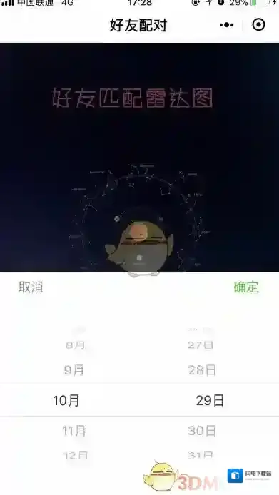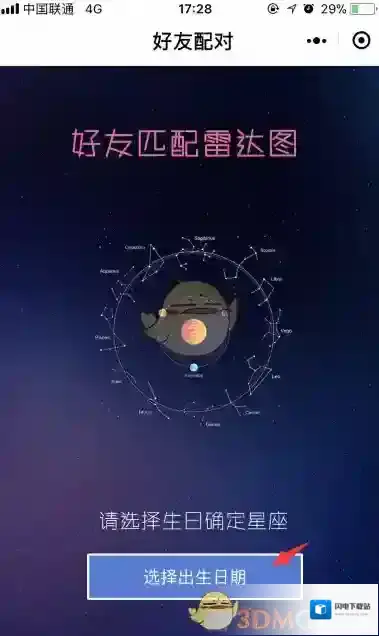 2、这个时候,你就进入了好友匹配雷达图界面,选择出生日期,如图;