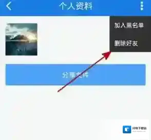5、点击以后,出弹出一个下拉菜单栏,一种有一项功能就是“删除好友”,点击该功能即可,如下图所示