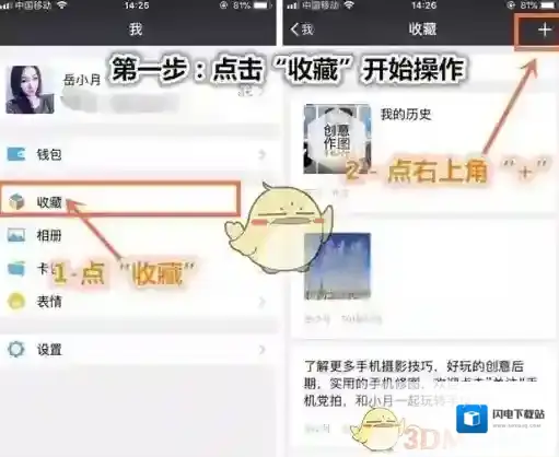 第一步:首先在手机中打开微信,然后在“我的”界面中,点击“收藏”,之后再点击右上角“+”号,如下图所示。