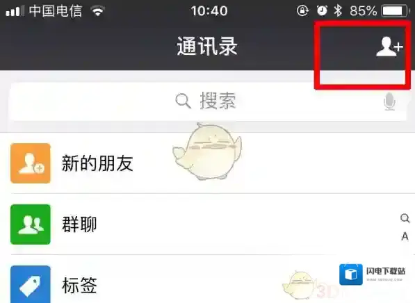2、接下来,点击右上角的添加好友的图标,点击之后进入添加好友的页面。