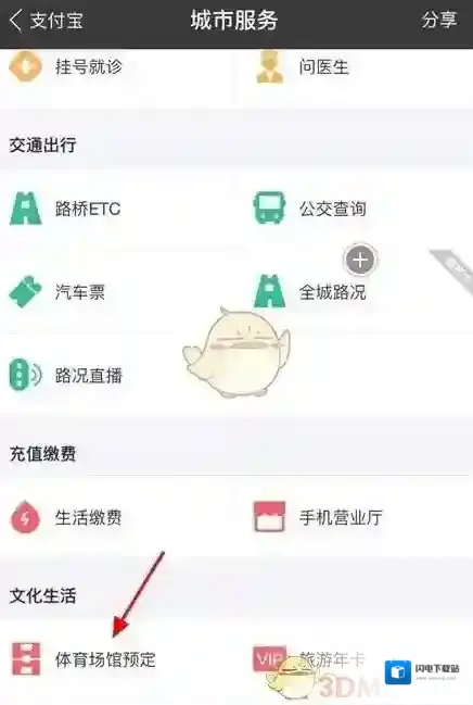 二、进入到城市服务综合服务页面之后,我们在文化生活模块下方即可看到体育场馆预定选项,如图所示。