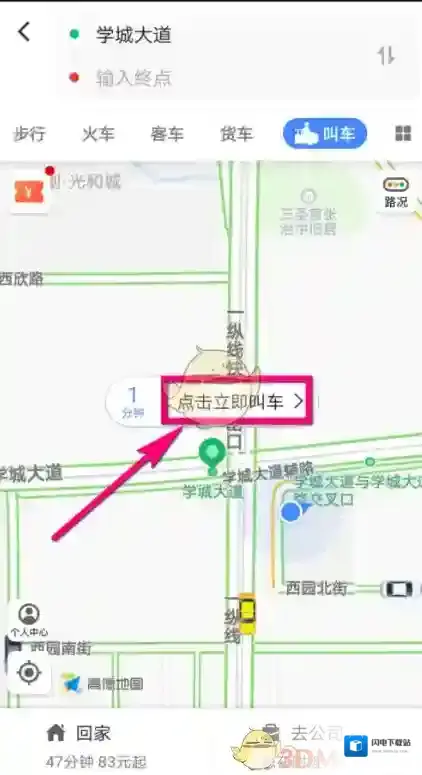 然后会自动跳转到如图所示的页面,在页面中部显示了你现在所处的位置,点击位置图标上方的点击立即叫车。