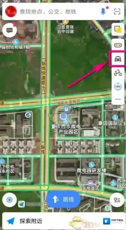 登录账号以后,在地图首页右侧图示的位置点击轿车图标。