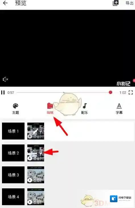 3、然后在进入了视频编辑页面后,点击页面里的“编辑”选项,从下方列表里选择要调节时间的视频片段。