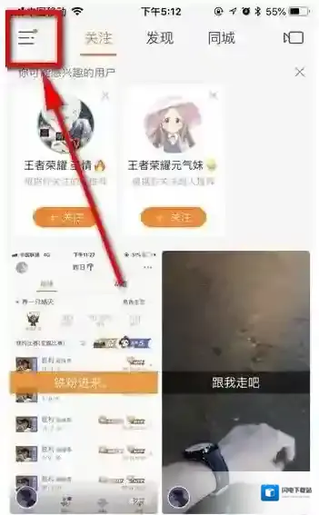 1、打开快手APP,进入界面,点击左上角的横杆,