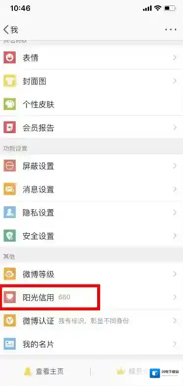 微博APP中,在我那点击头像进入用户中心,下拉就可以看到阳光信用了,旁边是你的分数,进入可看到具体阳光信用分的分析。