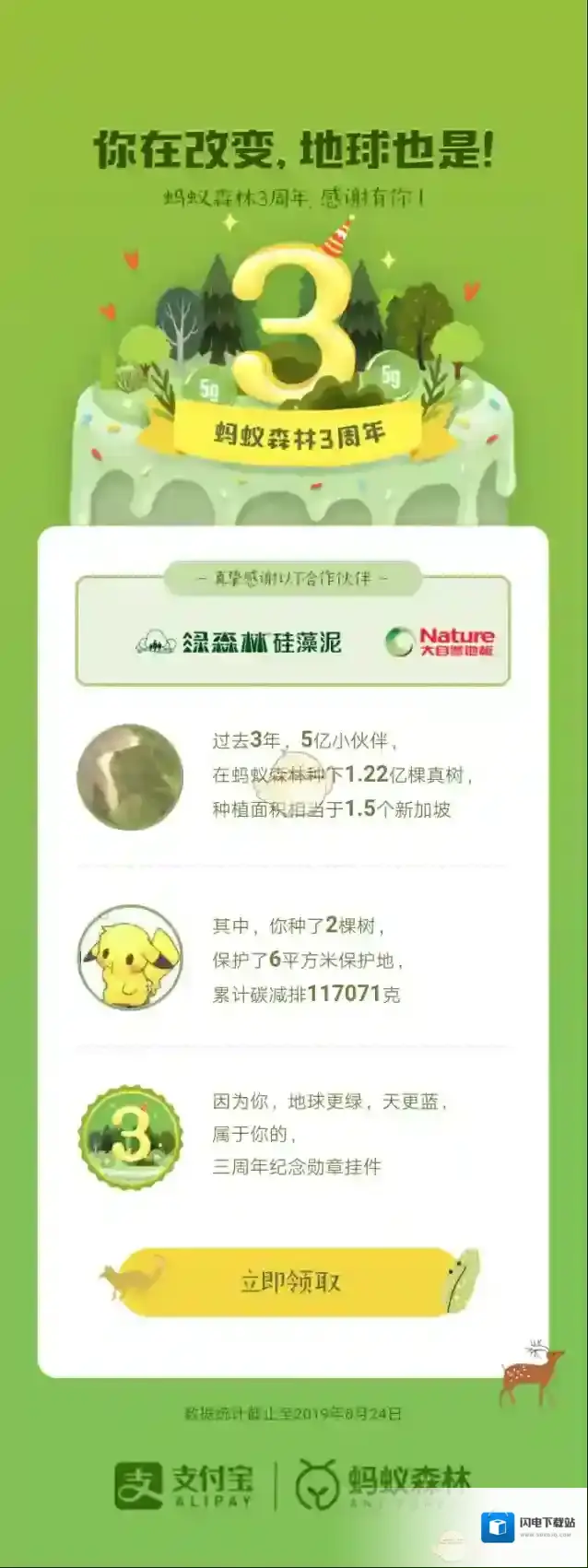 支付宝蚂蚁森林三周年皮肤领取技巧