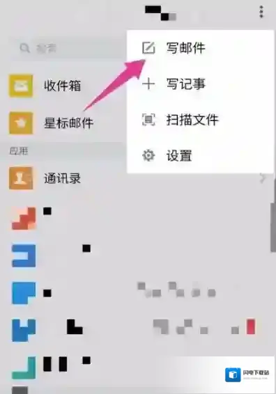 2、然后在打开的选项中,点击写邮件。如图