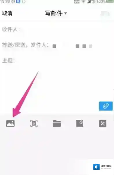 4、设置好收件人后,能看到右下角有个附件图标,点击打开附件。如图
