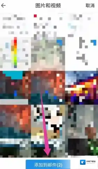 6、会打开手机的图片和视频界面,找到要发送的图片视频,选择图片,然后点击添加到邮件。如图