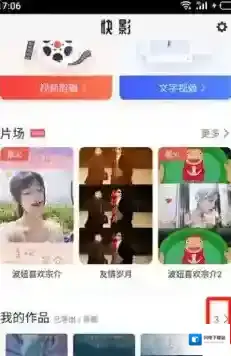 1、首先对于手机上安装的快影打开,在滑动屏幕到底部找出作品选项。