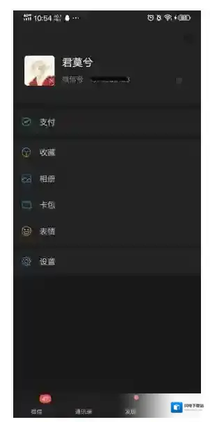 4、点击之后即可将整个微信界面设置成为黑色模式,但搜索界面/小程序暂不支持深色模式