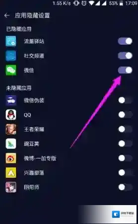 1、在X分身的设置里打开应用隐藏设置;
