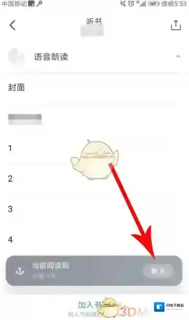4、这时打开的页面是听书列表,可以看到章节序号,点击下方的“播放”