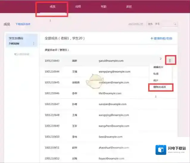 《课堂派》删除成员方法 2025-07-07 08:28:03 编辑:小豆牙 分类:应用教程 • 阅读:731 1、进入『成员』页面,可以看到本堂课学生的名单 2、勾选相应学生的复选框,然后点击『操作』按钮,下拉框选择删除。需要提醒的是删除学生后无法恢复,只能重新加课。 课堂派应用相关内容 全部 课堂派学生 课堂派删除 课堂派成员 课堂派 课堂派加课 课堂派的是 《课堂派》没有消息提醒解决办法 1、首先,请点击微信中「服务号」或「企业号应用」的右上角头像,确认接收消息设置是打开的。 2、确认后,如果仍不能收到消息,请点击微信底部菜单「进入课堂」,查看是否已打开通知设置。 3、若上面的情况都已排除,你可以直接联系平台客服。 2025-07-07 《课堂派》密码找回教程 课堂派的账号密码都是自己设置的,所以当我们出现了忘记密码的情况,也是可以自助找回的。课堂派忘记密码怎么办?这里小编来为大家介绍一下课堂派密码找回的方法教程。 网站端 1、打开m.ketangpai.com,进入课堂派登录界面,有忘记密码功能,可以... 2025-07-07 发表回复 请登录后评论... 登录后才能评论 评论列表 (0条)