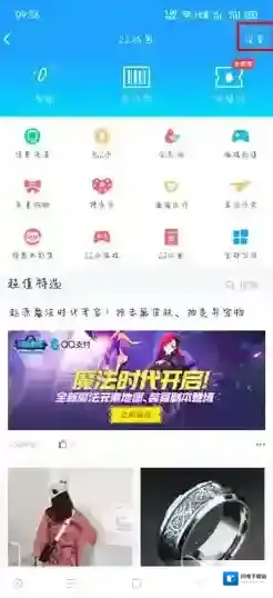 2、点击QQ钱包内右上角的设置,进入设置页面;