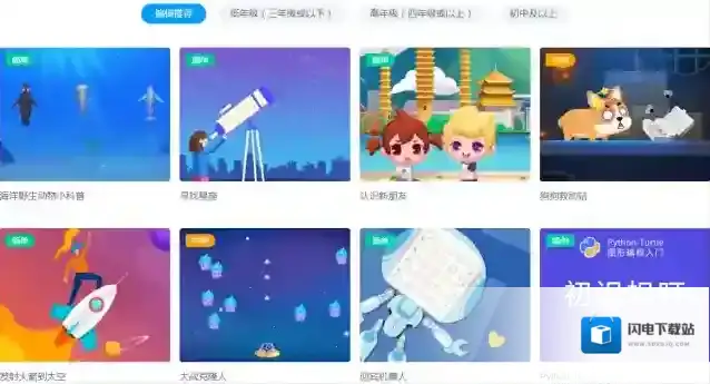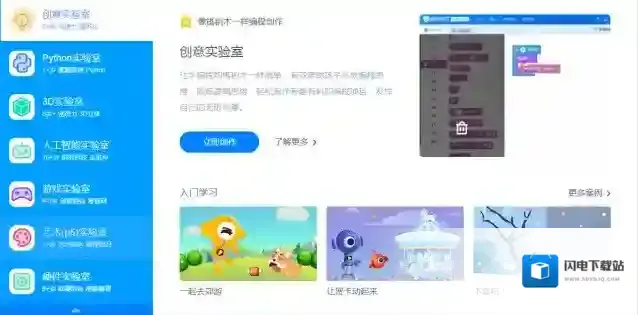 2、创意实验室-图形化编程+硬件适合9-12岁青少年,通过积木块拖拽完成编程,从简单的图形化编程逐。