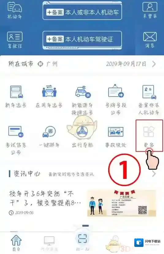 1、打开交管12123手机APP进入软件首页,在主界面点击更多