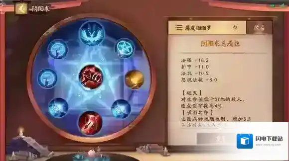 解析:后期的团战主要依赖于烟烟罗的先手控制,因为烟烟罗的硬控技能手短,所以一般会命中对面的前排式神,因此太阴·太极提供的忽视法抗,能够帮助烟烟罗对前排造成威胁;最后一件装备就选择山吹花烬,配合这件装备的被动效果,在团战中能够对更多的敌方式神造成AOE伤害,爆发过程中也能补足伤害。