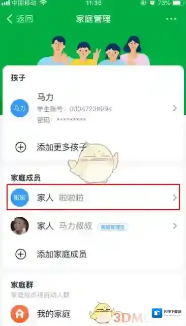 注:非家庭管理员不能删除家庭成员,需联系家庭管理员进行删除。