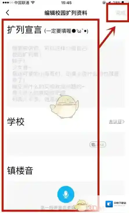 4、在页面输入自己的相关内容后点击右上角的”完成,即可成功操作。