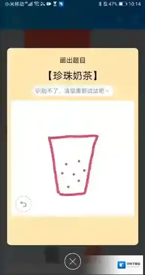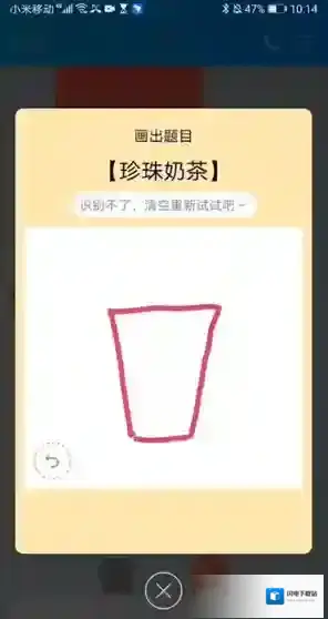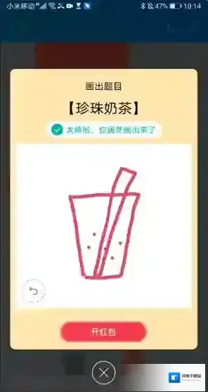 3、然后在倒梯形中画一个竖上的长方形作为珍珠奶茶的吸管,识别成功即可领取红包。