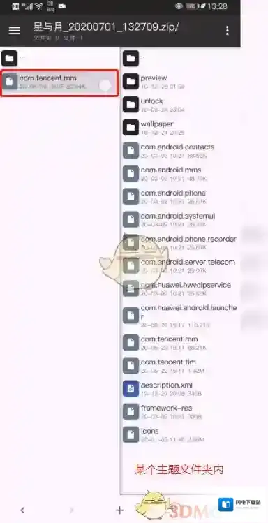 5、然后将左侧下载的主题文件(.mm后缀文件)移动到右侧应用商店下载的某个主题下;