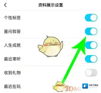 3、另外,QQ匿问我答功能是可以关闭的,关闭后就不会在资料卡中展示了。