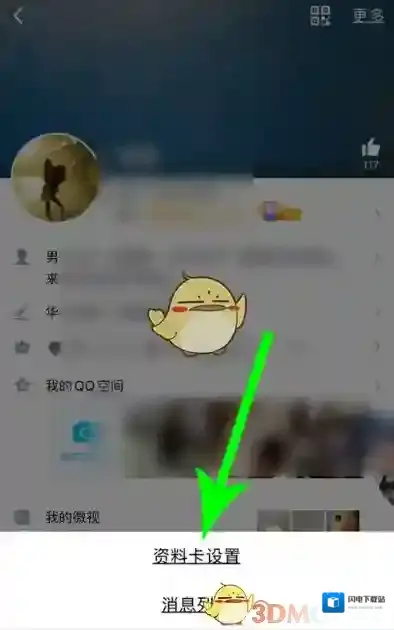 2、打开底部弹窗后,点击“资料卡设置”。