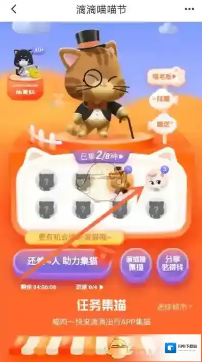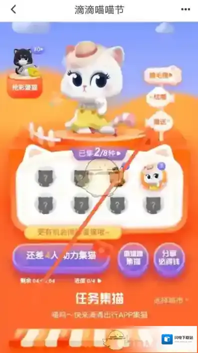 1、打开滴滴出行APP,点击界面下方的集猫咪活动进入。