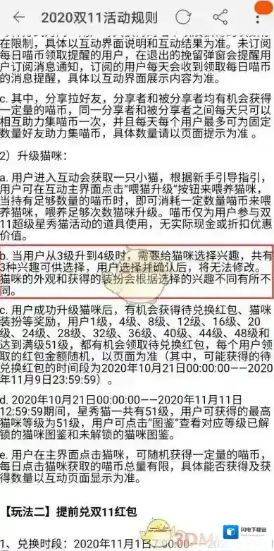 2、这个在天猫2020双11活动规则中已经明确说明了,如下图,确认兴趣之后,将无法修改哦!