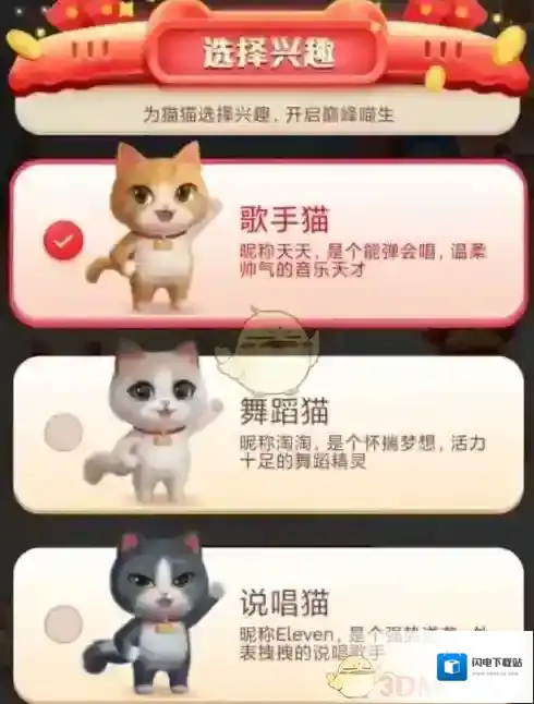 1、当用户升到四级为猫咪选择兴趣的时候,在界面上就可以看到兴趣只能选择一次,而且后期无法修改。