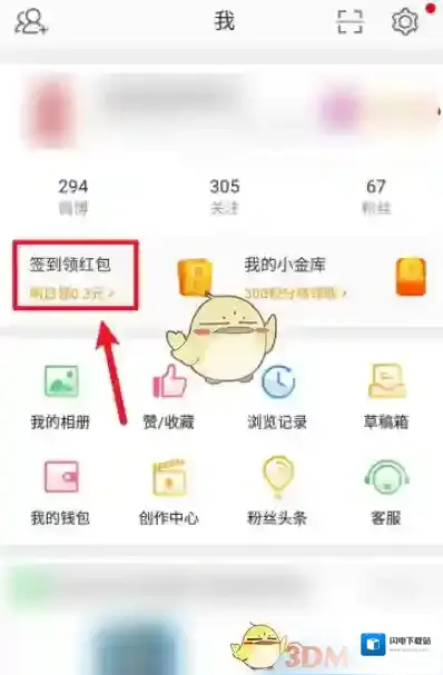 2、登陆到首页后,点右下角“我的”,进入“签到领好包”。