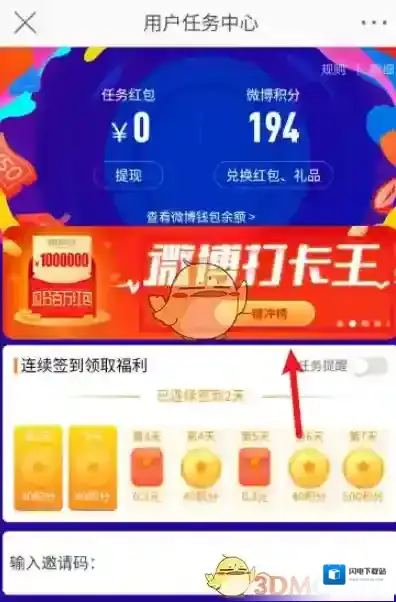 3、进入签到领红包页面后,点击“微博打卡王”活动进入。