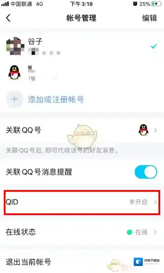 3、进入账号管理界面后,可以看到多了个“QID”选项,点击打开