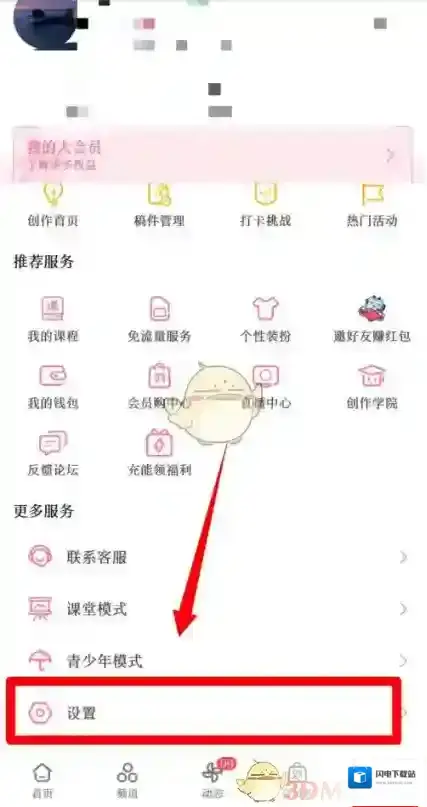 1、在哔哩哔哩“我的”界面中点击最下方“设置”。