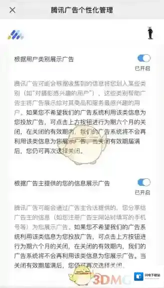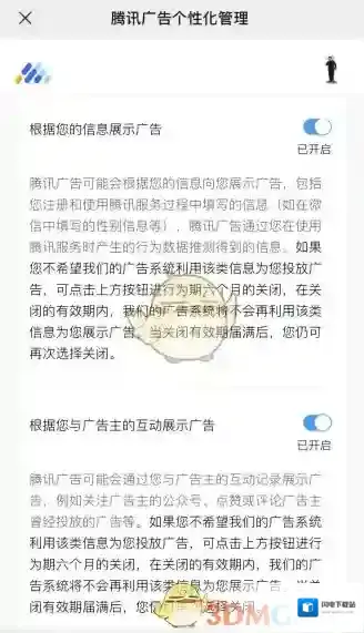 7、登录完成后下滑页面,将所有已开启的按钮都设为关闭,这样就可以解决广告的问题了
